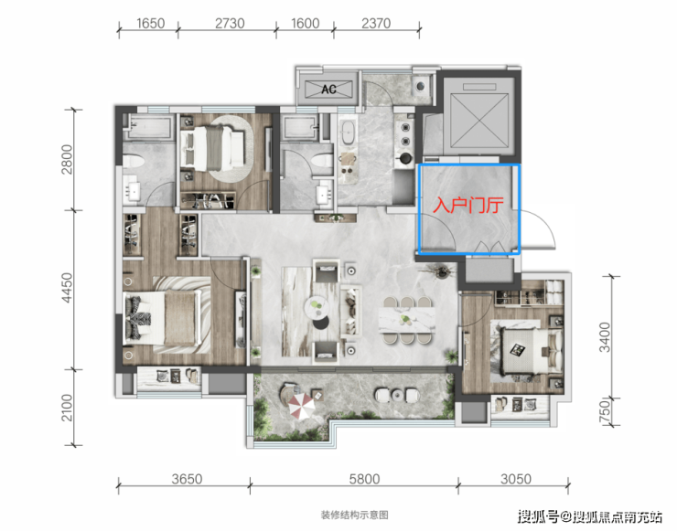 ### 户型图赏析**样板间实拍图(字体:16px)** 于天恒·锦上樾而言,即便是建面约 115㎡的户型,每户都配备了约 6㎡的独立入户门厅。这一独具匠心的设计,有效拓展了储物空间,使日常生活里的各种杂物都能找到合适的收纳之处。不仅如此,它还巧妙地营造出充满仪式感的归家氛围,业主每次步入家门,都能深刻感受到那份专属的尊崇体验。