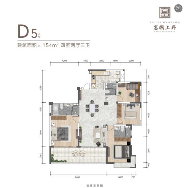 建面约154平套四