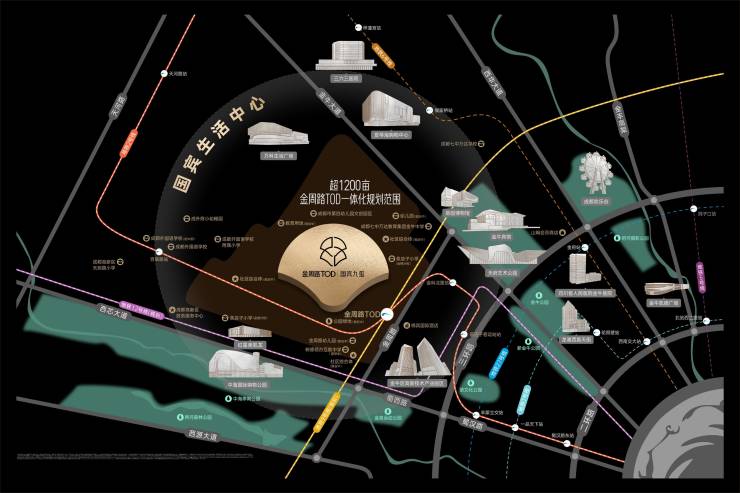 国宾板块作为金牛区 “中优” 核心承载地,既是主城稀缺的低密宜居板块,也是城西交通枢纽与产业转型高地。板块聚集了现代商贸、科技服务等多元产业集群,周边中海国际商圈、天府 111 等成熟商业配套环伺,同时依托 “三纵三横” 城市主轴与双地铁规划,成为连接中心城区与郫都区、温江的关键节点。国宾九玺作为成都轨道集团打造的 TOD 战略级作品,与地铁 2 号线金周路站无缝衔接,出站步行仅 50 米即达小区大堂,11 站直达天府广场、春熙路,未来更将接驳地铁 9 号线二期,双轨交汇激活全域通勤效率;通过金牛大道、蜀西路等城市主动脉,自驾 25 分钟可达金融城,实现 “主城生活 + 全城通达” 的双重优势。