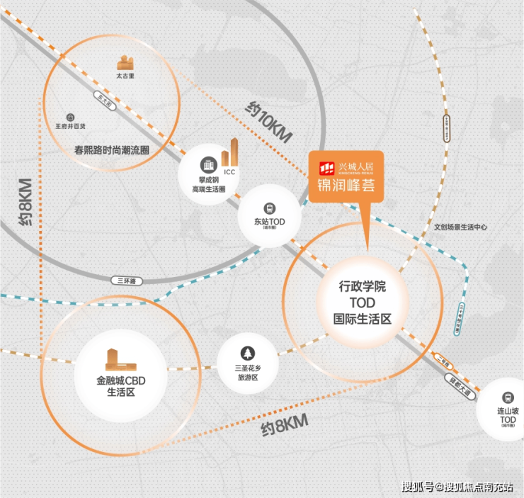 项目位于龙泉驿区行政学院TOD核心区,地处成都东进战略要地。周边交通网络发达,地铁2号线、9号线、30号线三轨交汇,5站直达金融城,6站抵达攀成钢,10站连通春熙路商圈。驿都大道、绕城高速等主干道构建起立体交通体系,出行便捷无忧。