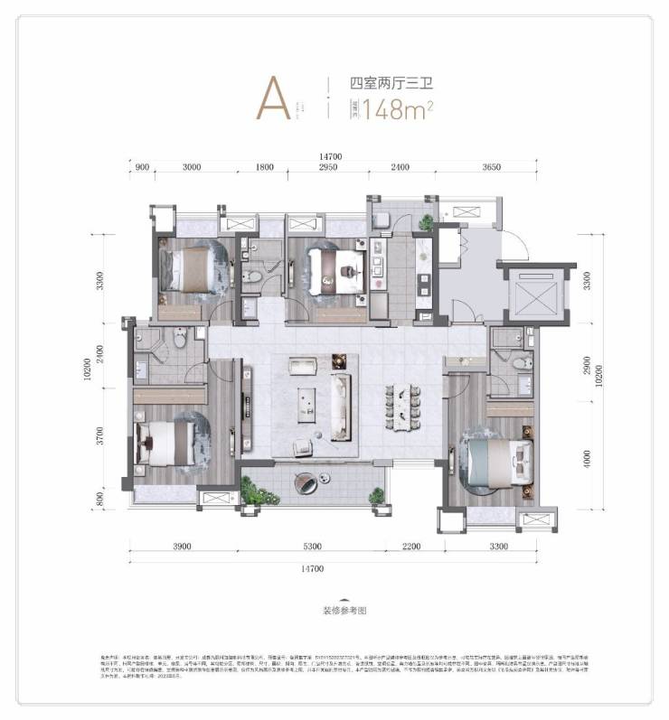 建面约148平套四