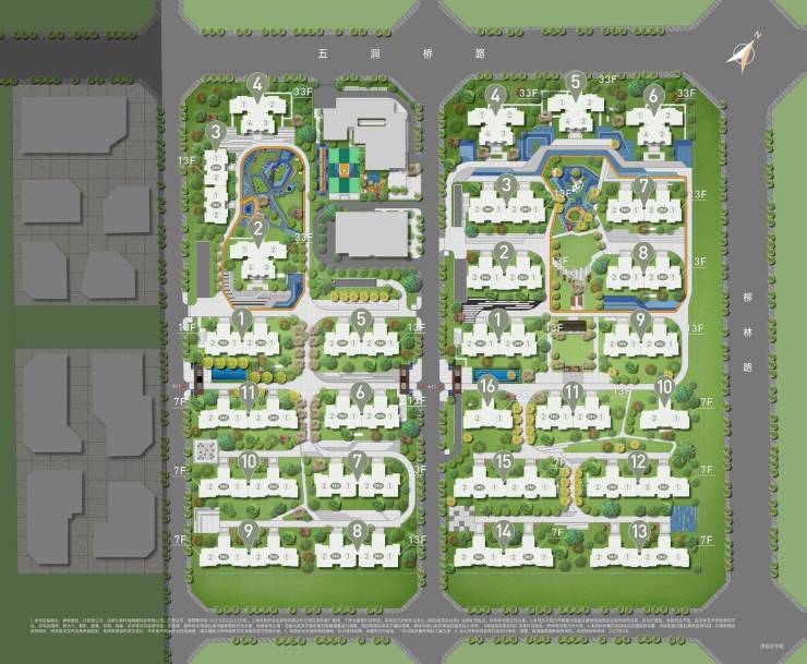 洋房:10栋,13栋(7层,1T2户) ——区域绝版真洋房,建面133平方米;12栋(7层,1T2户)建面148平方米,精装均价14000左右。