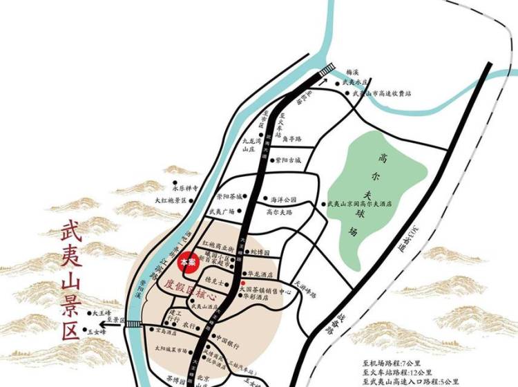 远华国际大酒店、圣远国际酒店、武夷美食广场、大拇指幼儿园、开心购物商城、果蔬市场、武夷山风景区 绿地