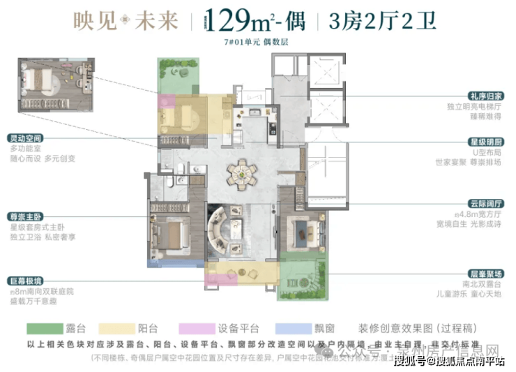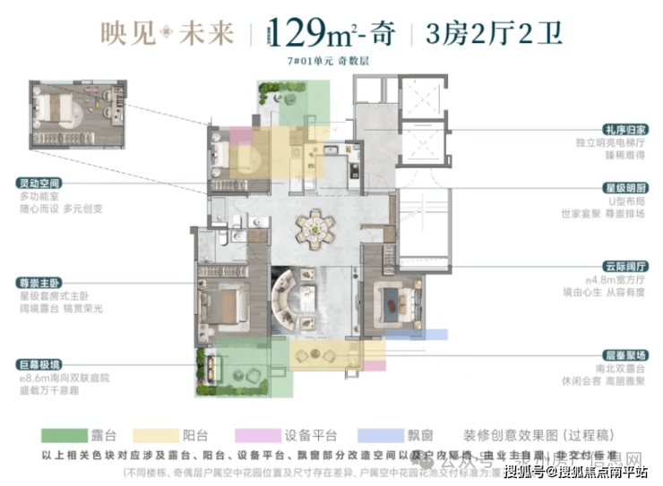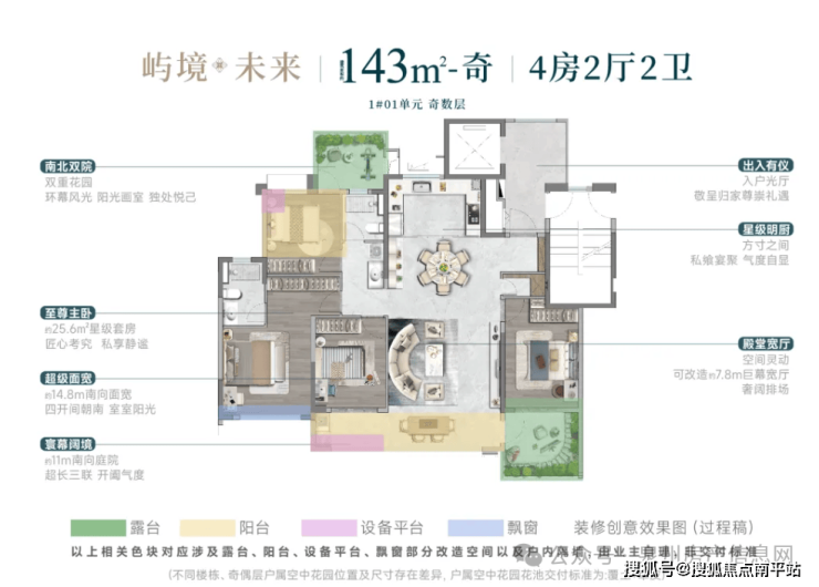 这次曝光的户型,才是真正的重头戏。项目主打建面约129㎡、143㎡和188㎡三个面积段,全部都是“第四代住宅”设计,每家每户都有巨大的空中露台或庭院。