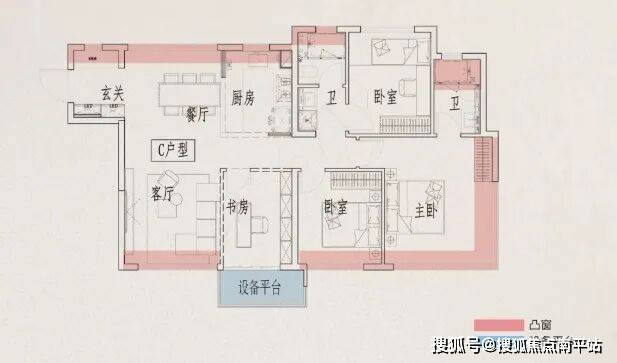 •110㎡高层朝东边套,可自由切换3房4房格局;