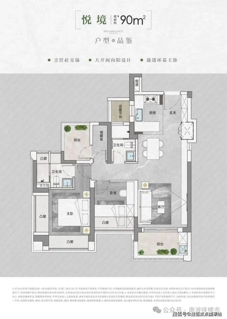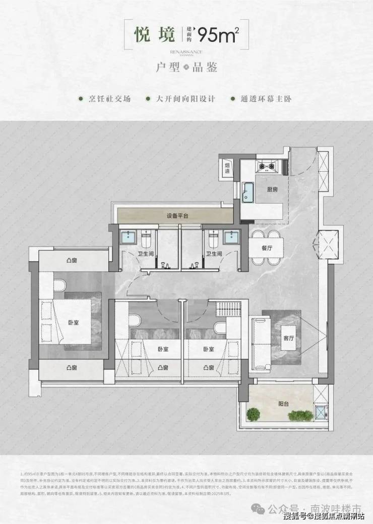 • 得房率:通过创新性的飘窗、双阳台改造、设备平台赠送等设计,实现平均94-96%的惊人得房率。