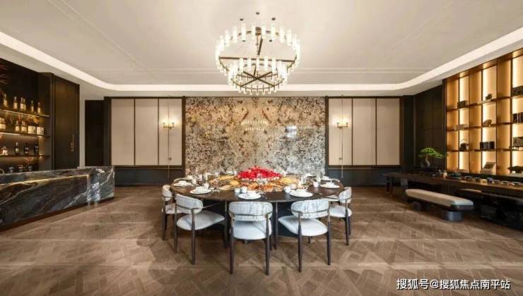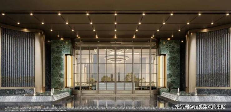 同样做到这一点的,还有联发嘉和御府,当购房者站在气势恢宏、有着约13米高、约58米宽的双层奢阔门庭之前,对面是中央精致超白玻璃电动移门构筑视觉焦点,两侧镶嵌铂金钻、普拉达绿奢石景墙与恢弘前场环抱相迎——这就是对项目最好的注解。