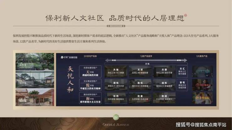 • 2023年,保利发展以“天悦人和”为产品理念,“人文社区”为产品服务战略