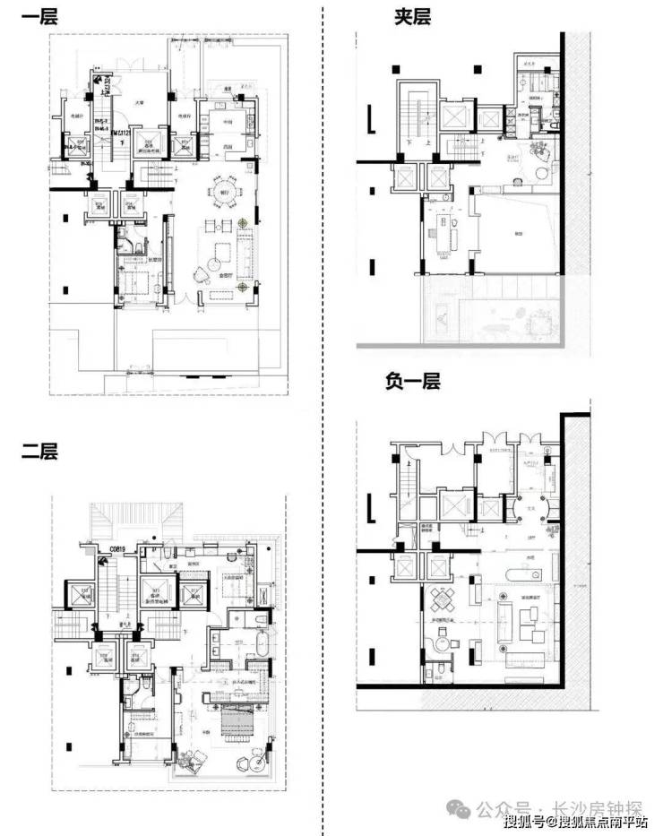 下叠户型各层平面图:
