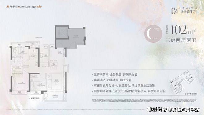 以及我们的网红爆款,建面约102㎡(C户型)三房两厅两卫,不仅保留了其小户型所有的优势,更增强了空间感和舒适度!