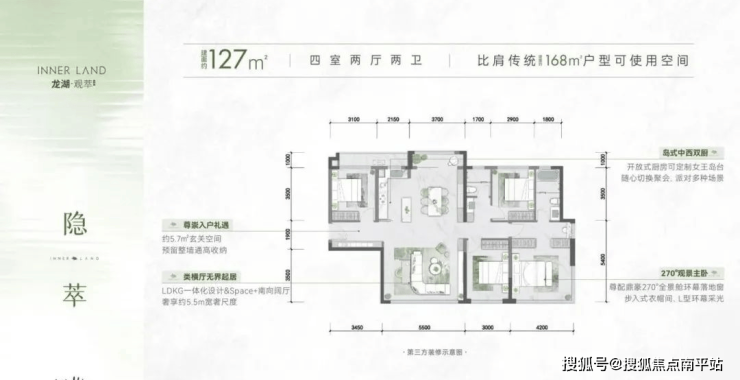 产品方面,主打新规户型,打造建面约 106-127-143-175㎡环幕奢宅,超高得房率。
