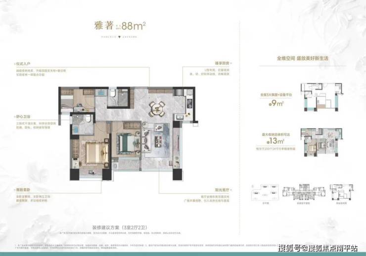 高使用率:设备平台可拓展为稀缺外阳台,3大飘窗赠送,使用率达83%。