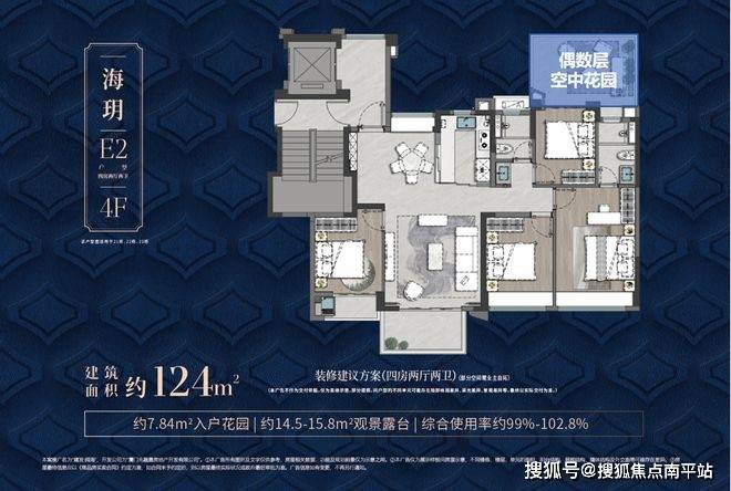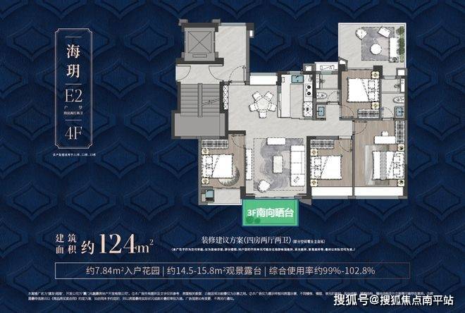124㎡第四代住宅洋房,得房率约100%-103%,堪比市场上160㎡住宅;