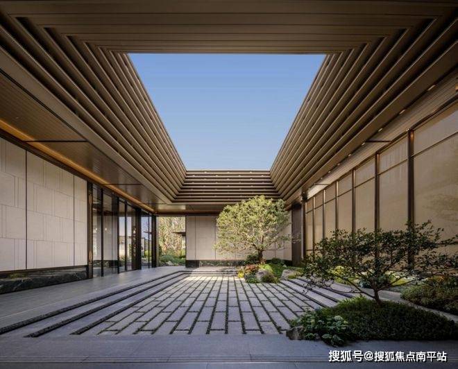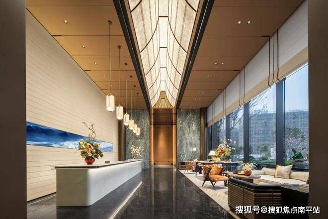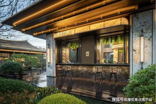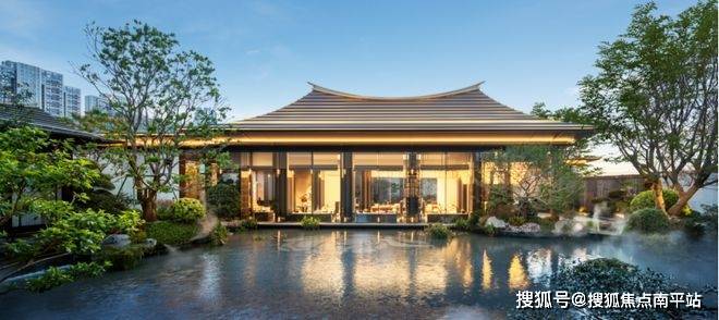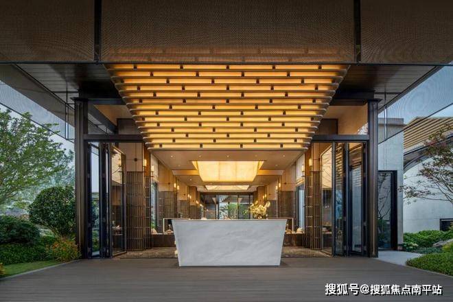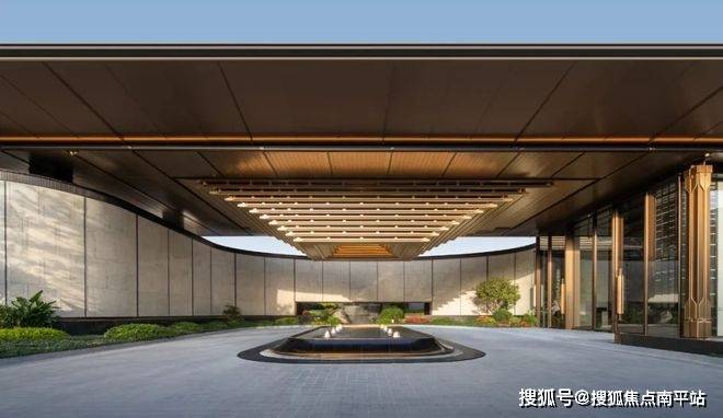 大门主入口引入“把酒店搬回家”的产品理念和“回家即度假”的生活理念,打造奢华酒店式归家大门。屋顶高约9.7米,整体挑檐向两侧延伸,长约49米,庑殿金顶的屋顶形态,以现代化的设计手法融入传统屋顶形式,结合鲁班锁倒影装置传达山水倒影的意境生活。来电咨询☎️☎️400-159-8559转接7777【☎营销部电话已认证】