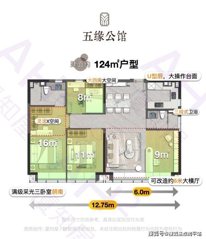 选择四房方案,能做到四开间、三卧室朝南,采光无敌,还能做到私密分区,三代同堂也轻松
