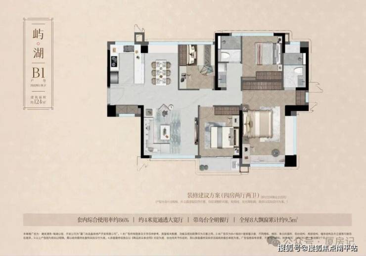 •宸启瑞湖主力户型有 244平 289平 366平等4室布局;