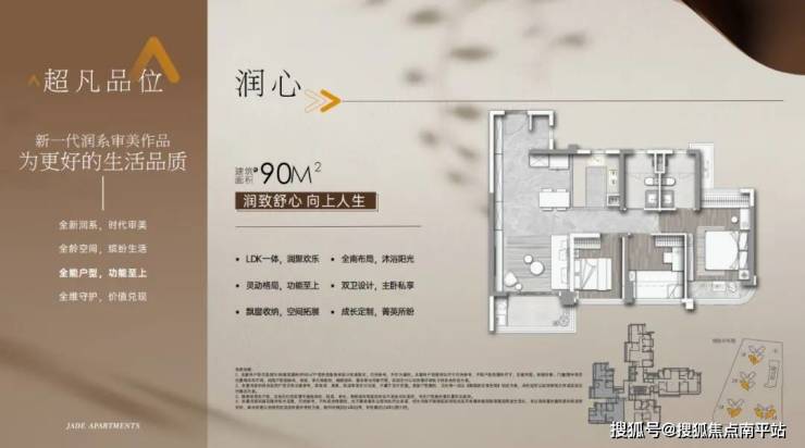建面90平三房两卫,全屋南北通透,四开间朝南,3个卧室朝南,LDK一体化,可打通次卧做到大客厅
