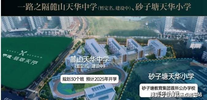 项目在小学隔壁规划了一所初中,雨花区政府与长沙麓山国际实验学校正式签约,将在片区创办麓山天华实验中学(暂定名),首批开办30个教学班,预计2025年秋开学,招生1500人左右。