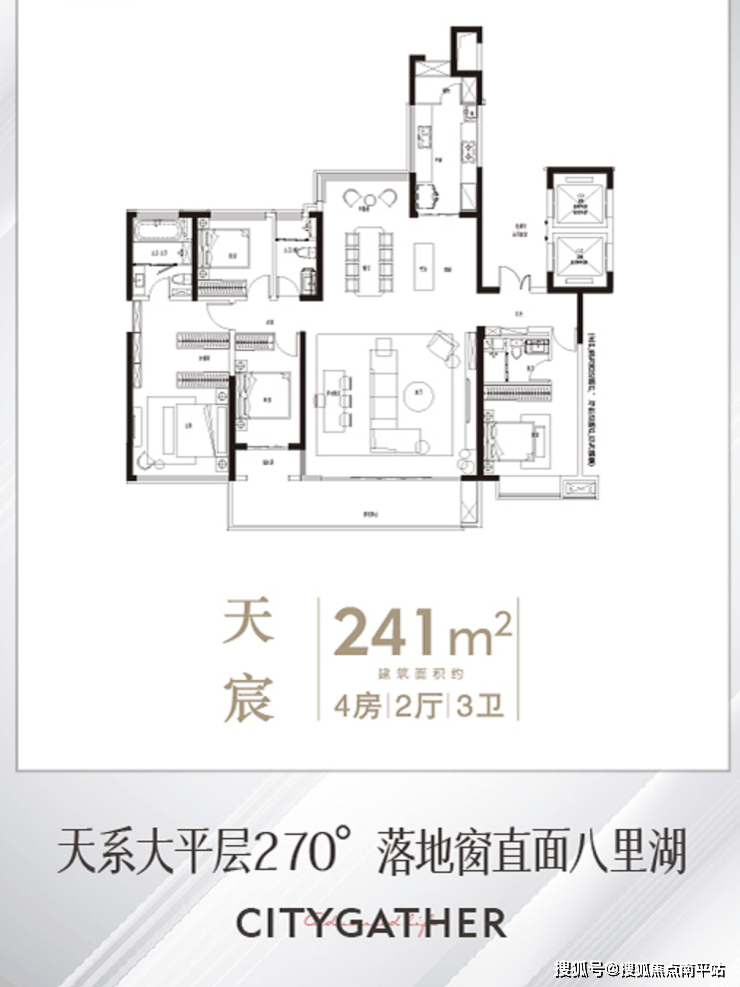 保利天汇打造以建面约241㎡湖景大平层和建面约110-143㎡的高层住宅产品,满足从刚需到终极置业的人居需求。