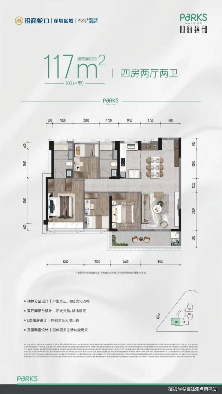 117㎡4房2卫共30套,户型方正,同样采用竖厅设计,动静分区明显。双开间阔景阳台,大视野奢享更多阳光和惬意,户内多飘窗设计,不仅增大了通风采光,美观度和实用性更是大大提升。主卧套房设计,衣帽间+卫浴一应俱全,更具私密性,采用双飘窗设计,避免暗浴的同时,扩大了室内视野,还增加了使用空间,让生活被赋予更多的可能。项目位于南山蛇口,由招商地产开发,蛇口是招商的大本营,有国企背书,项目在交楼方面还是有保障的。