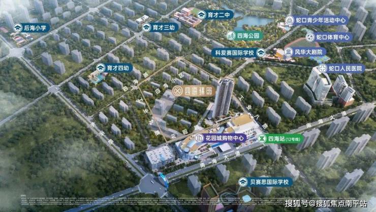 项目所处的板块,定位的是蛇口中心。『四海臻邸』区位优势十分明显,东西向位居南山公园、深圳湾公园两大公园之间,北近南山中心,南接招商蛇口邮轮母港。招商四海臻邸是招商花园城二期的备用地项目,是招商蛇口花园城系列阔别12年回归再升级的焕新之作。项目地处“粤港澳大湾区、中国特色社会主义先行示范区、蛇口自贸区、前海合作区”等战略叠加区,承前海启后海。如今,蛇口是大湾区联通世界的海上门户。未来,根据“一轴一心三核”的设想,将以南海大道为主轴,以蛇口体育中心四海公园为中心,以蛇口网谷、太子湾邮轮母港为核心产业发展聚集区,构建“未来国际海洋城”的新蛇口。四海臻邸位于蛇口CITY花园城中心旁,位居蛇口成熟居住区域,交通四通八达,生活配套一应俱全,四海公园为伴,同时汇集蛇口40余年沉淀的众多国际学校,是深圳极具国际风情的醇熟住区[ 多维交通枢纽 畅达全城 ] 四铁汇聚:距地铁12号线四海站直线距离约200米;距地铁2号线海月站直线距离约1公里;距地铁9号线南油西站直线距离约1公里;周边规划有15号线(规划中)(数据来源:百度地图 具体以实际为准)。主路交织:南海大道、东滨路、南山大道、后海大道等,出行便捷,通达全城毗邻四海公园及大南山公园,聚集“山海廊园”13处山海城市景观资源。3山:大南山、小南山、赤湾山1海:深圳湾1廊:深圳湾约15公里滨海长廊8园:四海公园,荔林公园、女娲滨海公园、南山公园、深圳湾公园、古炮台公园、蛇口山公园、蛇口文体公园四海公园:1989年开放的蛇口最大的文化公园,是一代蛇口人的精神坐标,被誉为深圳建设者的宝藏地。公园内的雕塑“盖世金牛”代表了深圳人的拓荒牛精神,更是蛇口人文风景的标志。历经31年风雨洗礼,四海公园于2020年翻新,以焕新姿态继续给蛇口人创造全新的美好记忆。[ 7大人文展馆 氤氲艺境 ]招商局历史博物馆、深圳湾文化广场(在建中)、南海意库、海上世界艺术中心、风华大剧院、深圳歌剧院(在建中)七大国内外知名的艺术展馆于此。周边CITY花园城、蛇口沃尔玛、海上世界、万象城、保利文化广场和 K11 ECOAST(在建中,具体营运时间以实际公布为准)等近100万㎡体量商业区。深圳招商花园城:项目咫尺深圳招商花园城,尽享花园城片区繁华便利生活。随着2022年招商蛇口对深圳招商花园城开启规模化2.0升级,这里将焕新成为都市生活艺术聚场,迭新升级蛇口城芯繁华