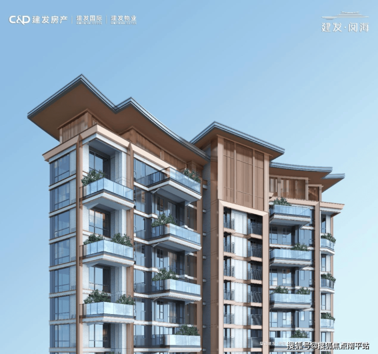 建发·阅海采用建发房产诗意东方风格打造,建筑塔冠上,中式挑檐的元素以一高一低的错落形式,既诠释“东方屋脊”的端重形象,又不失现代的轻盈灵动。香槟金金属线条、金属漆、深浅色质感涂料和多彩漆等多重复杂材料的运用,则写照东方美学的“流光溢彩”与湾海的大气多姿,焕新岛城人居建筑审美的至善追求。