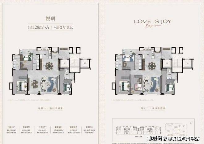 最让人惊叹的,莫过于其超 120% 的得房率,堪称楼市 “空间魔术师”。建面约 128㎡的户型,竟做出 4 房 2 厅 3 卫的全能格局,实得面积超 156㎡,堪比老规 180㎡大平层。15.6 米南向巨幕面宽,让阳光毫无保留地铺满全屋,清风自由穿梭每个角落。更难得的是三个全明卫生间,彻底终结早晚洗漱 “抢坑” 大战,客人来访也能保有私密体面,这样的配置,以往只有 160-180㎡以上户型才能奢望。