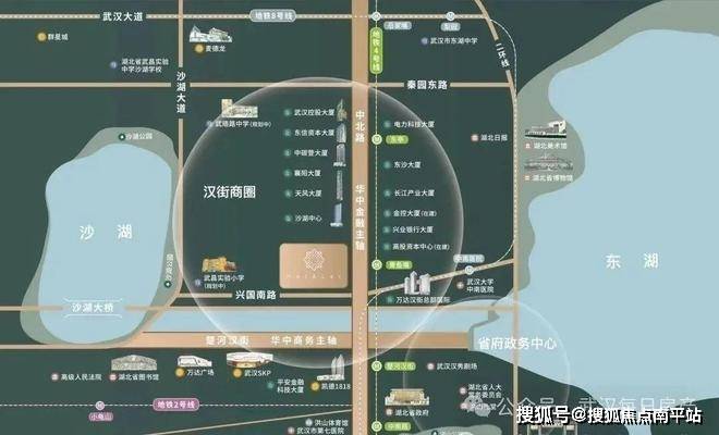 本案向南600米即是武汉唯一重奢店王武汉SKP,1.5KM楚河汉街人潮与中北路资本在此共舞,窗景即顶奢文明棱镜。
