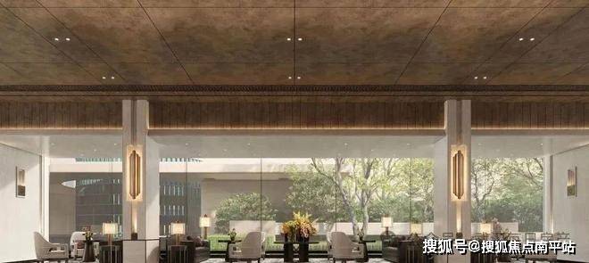 镜面水院倒影建筑美学,风雨连廊串联下沉庭院(叠泉绿台),园林即金融精英的第三会客厅。