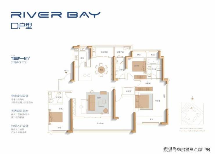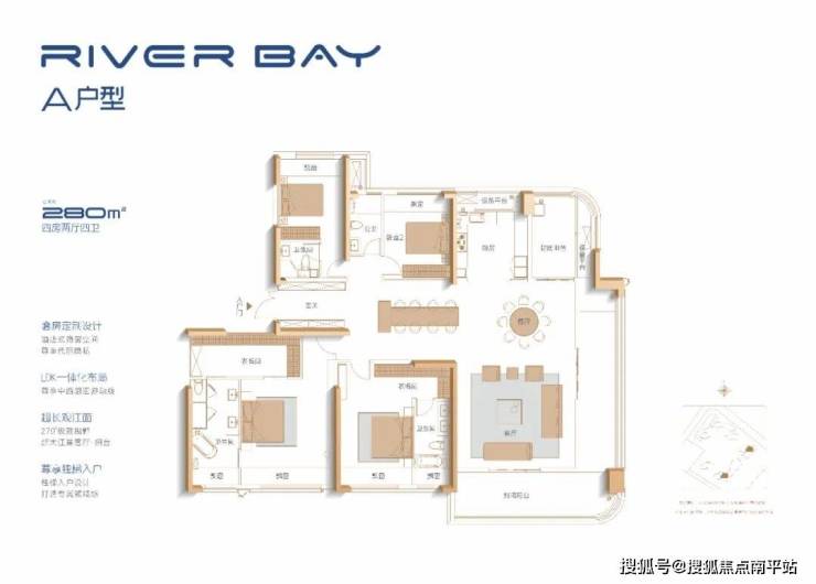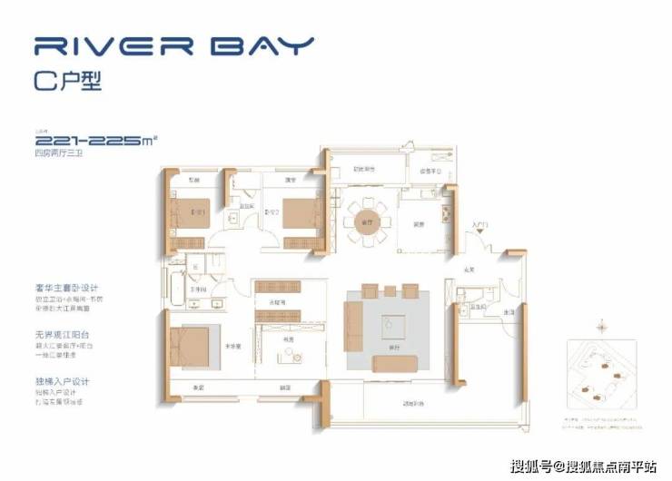18.4米转角阳台270°无界瞰江+10米直角阳台180°南向瞰江,采用退台式建筑设计,实现"层层有景、户户见江”。