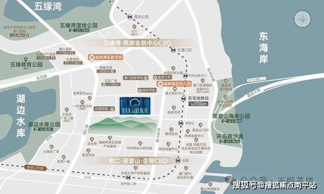 目前云启东方直线距离1公里范围内有,已有通用金砖创新基地总部、厦门航空总部、国贸集团总部、金圆集团总部、厦门农商行总部、厦门银行总部、厦门国际银行总部、英蓝集团区域总部、赣州银行区域总部、中乔体育总部等入驻,东方万佳国际酒店、厦门国际艺术品交易中心在建,五通金谷交通综合体、东宅TOD、柏明酒店等规划建设。