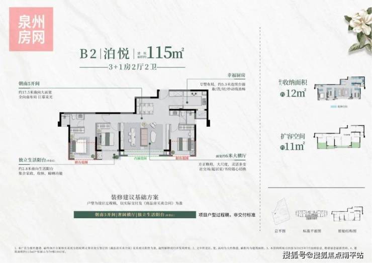 建面约115㎡3+1房