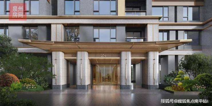 为提升归家的尊贵体验,建发打造 宽约64米奢阔大门(含景墙), 约10.5米挑高鎏金穹顶,同时升级星级酒店式环岛落客区,无风雨归家系统,打造出 太和殿同款庑殿金顶大门,极具昭示性、辨识度与领域感,是鲤城独树一帜的超尺度迎宾界面。