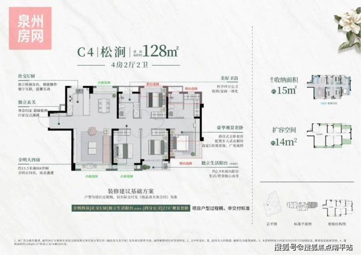 建面约128㎡四房