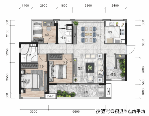 户型鉴赏;90㎡ 3房2卫设计