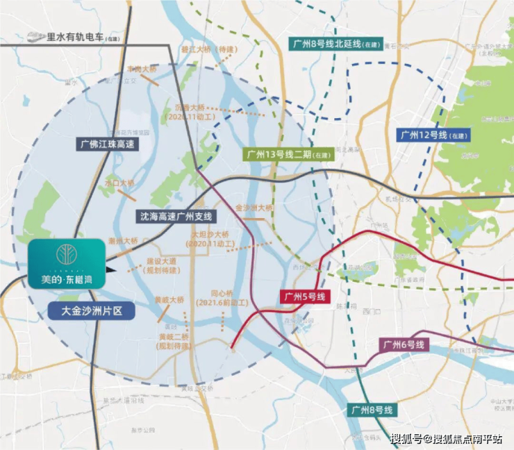 同时区域内布局广州地铁5、6、8号线及里水有轨电车有轨电车(在建),未来串联佛山8号线、广州13号线、广州12号线,构筑约30分钟立体广佛融城生活圈。