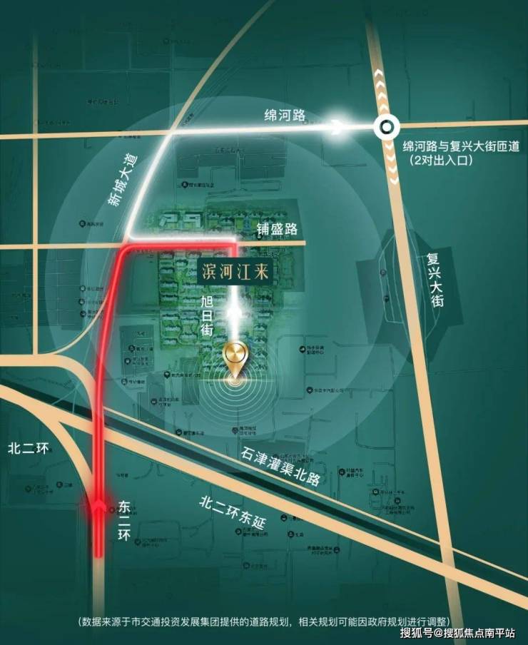 恒基滨河江来,地处位置优越, 接驳四条城市主干道,畅享全能路网。 距城市中轴复兴大街直线距离仅约400米;东二环直线距离仅约600米;北二环东延直线距离仅约400米;新城大道直线距离仅约200米。绵河路连通复兴大街,立体交通,高效出行。