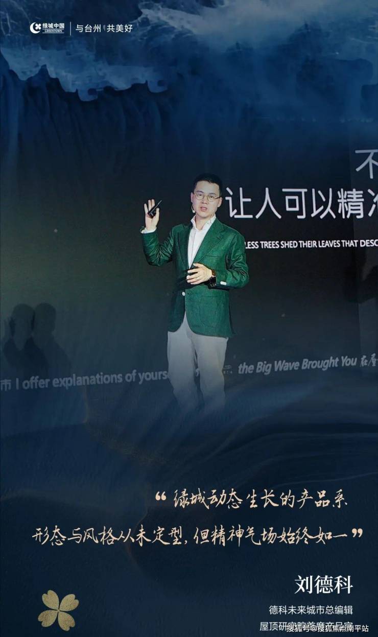 循迹时间,看见城市芯上的潮涌。光影流转中,绿城与台州的美好故事缓缓开启。绿城中国浙江区域台州片区负责人潘琦先生为发布会首先致辞。