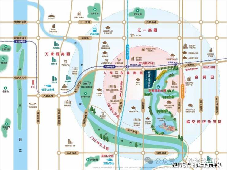 长沙发展的热点板块是滨江新城、洋湖、梅溪湖、东湖板块,本项目位于东湖板块核心。片区是芙蓉区政府“跨河东进”主发展阵地,也是隆平高科技园区核心。