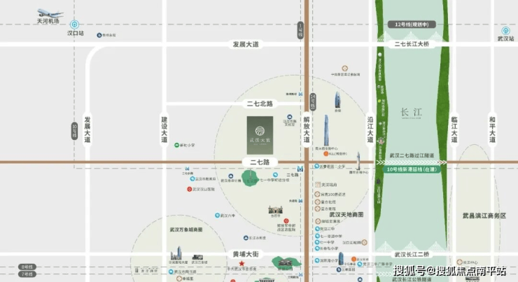 地铁方面,武汉天宸距离地铁1号线二七路站约350米左右,可步行抵达,约500米处还有在建中的10号线二七路站,也比较近,未来可享双轨出行。