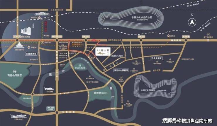 【娱乐配套】:规划中且已备案立项的航洋城和天堂岭东盟文化旅游产业园,山中院墅,地势高,空气清新,视野广阔。部分合院户型能瞰江,距离邕江以及滨江公园约800米