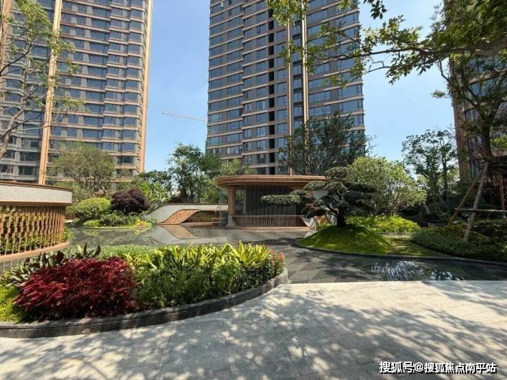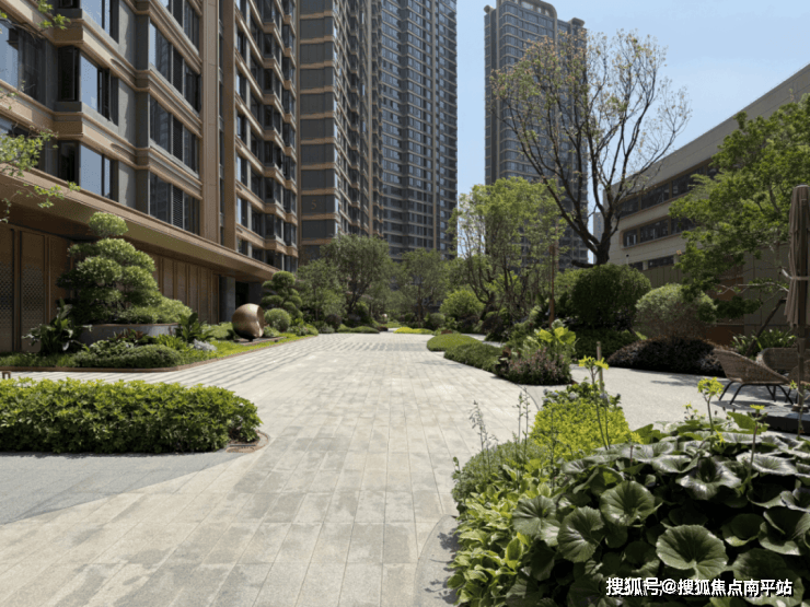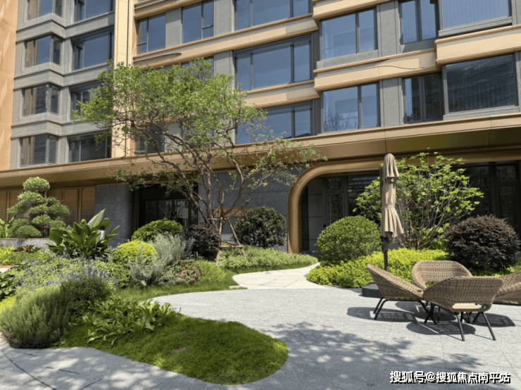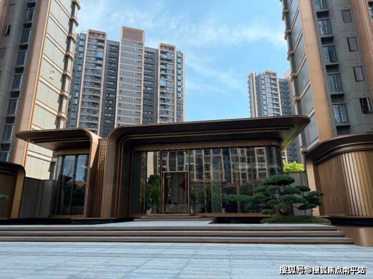 大门和外立面也是现代风。不过需要批评的是,立面设计本来和建发另一个盘湖畔九境是同款,但这个盘少用了铝板!导致明明同造型,质感比九境差不少。