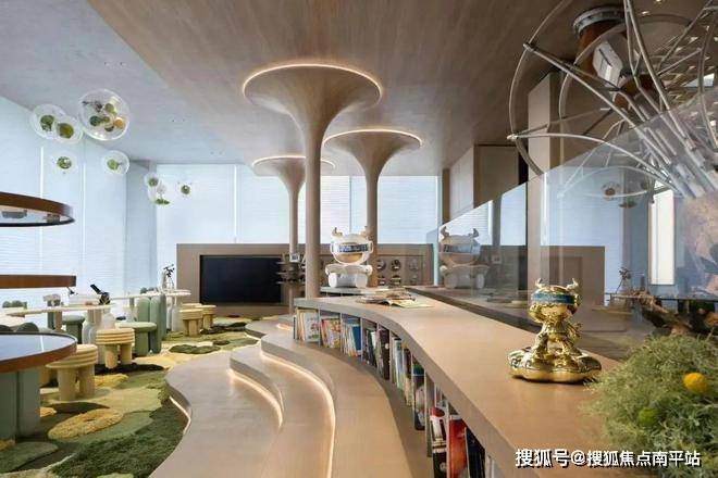 1、超大园林+下沉庭院:搞了13000㎡的绿化展示区!最特别的是做了三个下沉式庭院,把叠水景观会客区、松果主题儿童乐园、樱花林地这些场景连在一起,像个小公园,饭后散步遛娃有地方了。