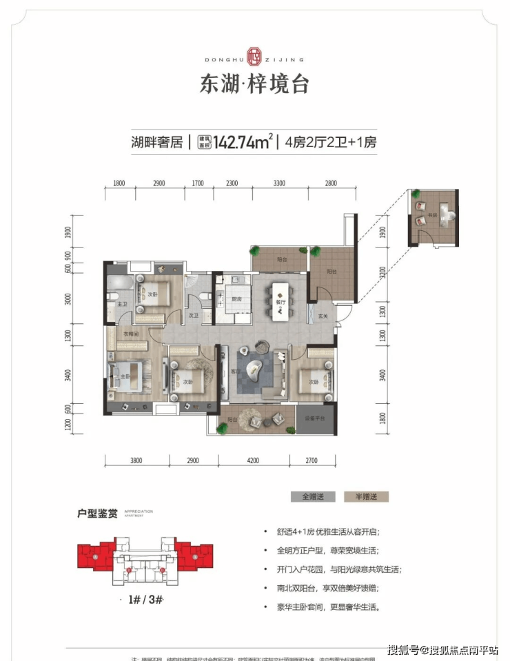 【梯户比】:两梯四户(1#3#)、两梯两户(2#)