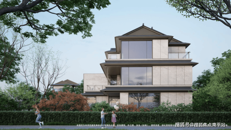 当我们仔细审视绿城·云庐的低密产品时,不难感受到绿城用东方语言抒发的美学追求:3层隐山低密取意"金陵画屏",立面采用大面积落地玻璃与不同石材、铝板、金属搭配,演绎庐系气质;1楼外墙采用贝金米黄石材,2-3楼外墙以米黄色铝板为主、檐口使用香槟色铝板和深棕色金属线条勾勒。