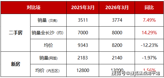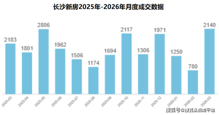 再看新房:2026 年 3 月长沙新房网签2140 套,去年同期为2183 套,同比微降2%,价格小幅上涨1.5%。