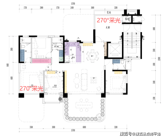 兰亭雅颂户型全部实现南向4面宽+270°采光主卧+全屋多达至少10个采光面。四代宅电梯厅更实现270°采光。二手房里采光好的房子一平米能多卖500元!