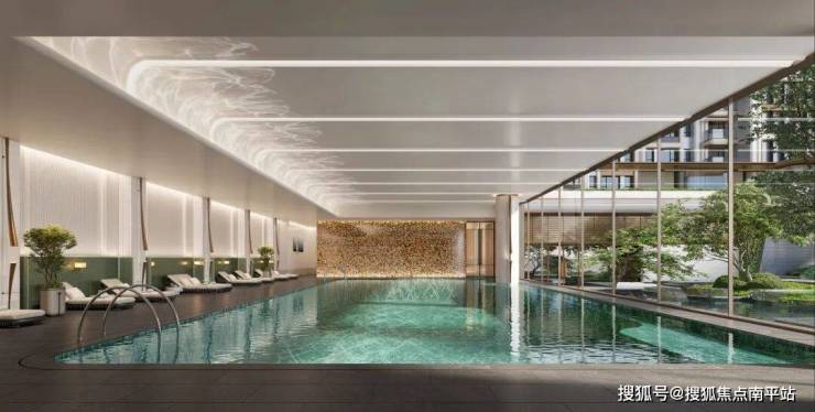 江宁金茂府会所体量超大,1400㎡下沉庭院+2500㎡室内空间,包括9大功能,含泳池(含儿童戏水池)、专业健身房、 私宴厅、娱乐空间、会议茶室复合空间、社区会客厅、行政酒廊、书吧、立体森林、ktv