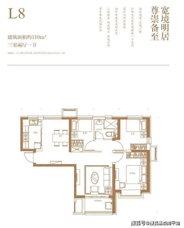 110m²现房小三现房高层产品,南北通透,全明户型,三室配置,明厨明卫,宽境空间,尊享奢美优居生活。