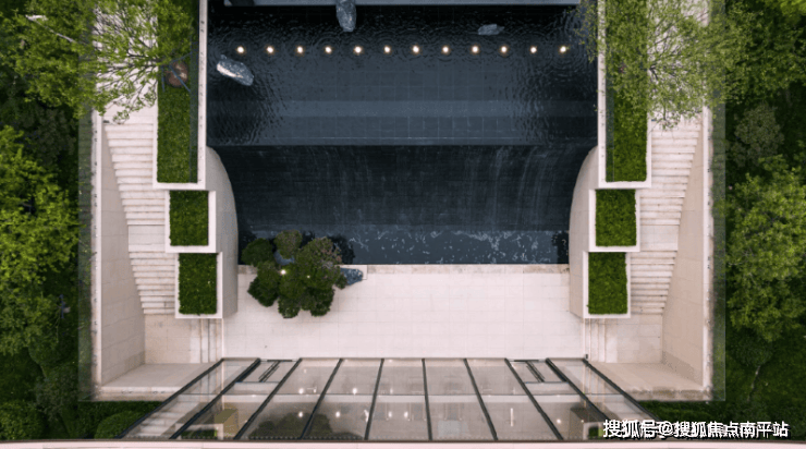 下沉庭院—建筑与景观融合设计,项目从社区入口大堂到归家单元门户,在建筑、景观、室内一体结合设计下,建立了高度融合的立体归家系统,让归家成为一次如度假般的缦系之旅。